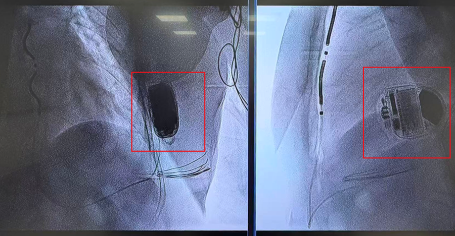 红框处为胡阿姨植入的最新型2.0版的血管外植入式心律转复除颤器